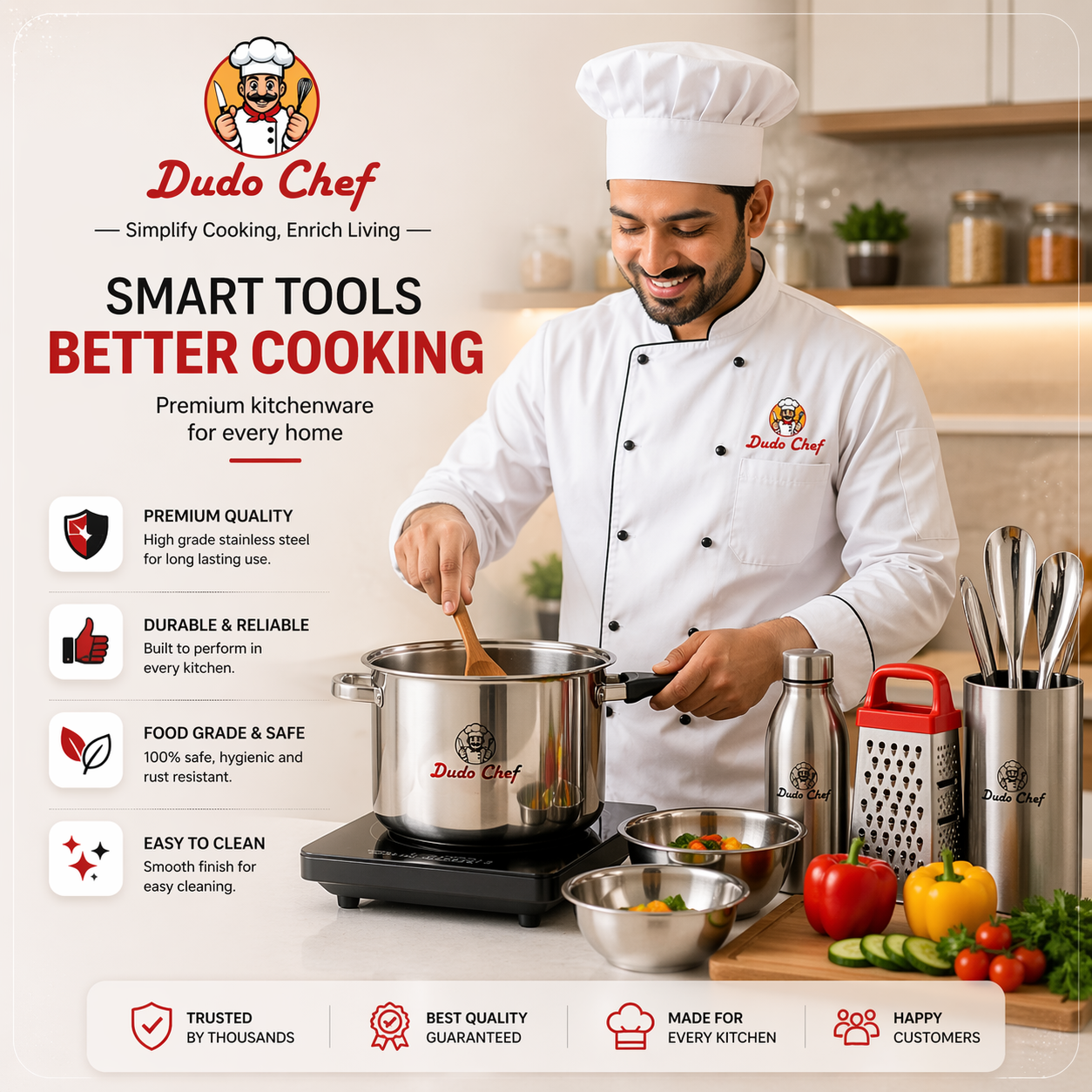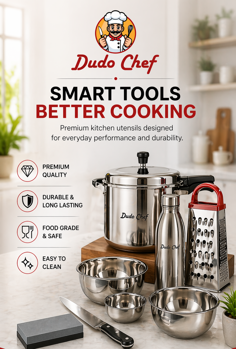At Dudo Chef, quality isn’t just a feature — it’s our foundation. Every product we offer is carefully selected and tested to ensure it meets the highest standards of durability, performance, and design.
